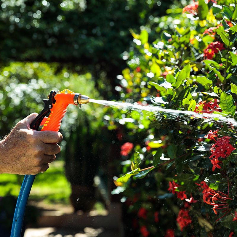 Permite regas à distância e também em vasos e canteiros e lugares altos.