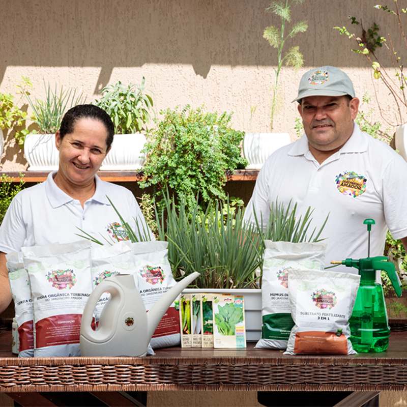Da mesma forma vai ter produtos e ferramentas ideais para fazer sua horta em casa.